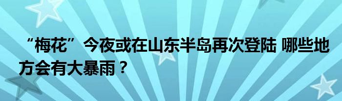 “梅花”今夜再次在山東半島登陸,這也將是“梅花”第三次登陸我國,預計登陸時強度為熱帶風暴級(8至9級,20至23米/秒)。受其影響,今明兩天,山東半島、遼寧、吉林等地將有暴雨或大暴雨,黃海、渤海等海域有大風天氣。