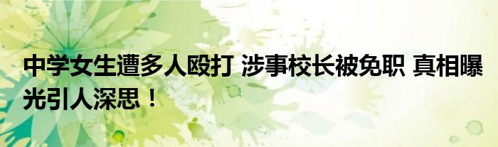 【#中學女生遭多人毆打 涉事校長被免職#】校園霸凌帶給被霸凌者的傷害是長久的。作為教育工作者,我們有責任有義務保護學生們的安全。日前,一則“中學女生遭多人毆打 涉事校長被免職”話題備受輿論關注的焦點。
