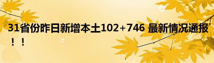 【31省份昨日新增本土102+746】據國家衛健委消息,9月15日0至24時,31個省(自治區、直轄市)和新疆生產建設兵團報告新增本土確診病例102例,新增本土無癥狀感染者746例。
