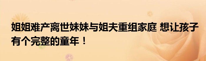 【姐姐難產離世妹妹與姐夫重組家庭】近日,安徽亳州一姐姐難產去世留下一下兒女,妹妹為了照顧兩個孩子,選擇與姐夫組建新家庭。