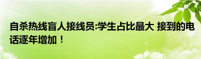 【自殺熱線盲人接線員:學生占比最大】近期,一篇“自殺熱線盲人接線員:學生占比最大”的報道登上了各大搜索引擎的熱搜榜,在網上引起了眾多網民的關注和熱議,小編也第一時間在網上查閱整理了一些相關資訊,下面一起來看下。