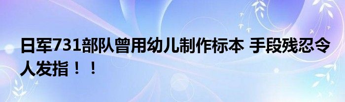 【日軍731部隊(duì)曾用幼兒制作標(biāo)本】侵華日軍731部隊(duì)在中國(guó)發(fā)動(dòng)慘無(wú)人道的細(xì)菌戰(zhàn),手段殘忍令人發(fā)指,曾用幼兒制成標(biāo)本。