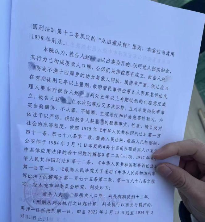 國家對于販賣人口的犯罪行為一直處于高壓打擊態勢,2月20日山東菏澤牡丹區對女子13歲被拐賣生子一案作出了一審判決,被告人趙某被判處有期徒刑12年,對于郭方利的精神傷害賠償要求予以駁回,在法庭上,郭芳麗當庭表示不服判決要求上訴,目前國防力已經準備向上級法院提交上訴書記敘要求給予自己的精神傷害賠償要求,這些案件發生在1987年13歲的郭芳麗在上學的路上被趙某從陜西拐賣到了山東菏澤并且還賣給了李某一家,生育有一子,在經歷了兩年后,我方已被成功解救,并且也回到了陜西老家。