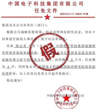 目前網(wǎng)上有關(guān)中國電科,陳志龍的一些信息全部都是虛假的,并且集團所有的單位已經(jīng)開始了多個輪次的排查,均沒有陳志龍這一個人的信息,在勞動遣派和協(xié)作人員當中都查不到這個人,網(wǎng)上出現(xiàn)的那些任免文件很明顯全部都是偽造的,目前集團公司已經(jīng)報警處理,要求警察來介入調(diào)查,同時中國電科集團表示他們是一個十分有愛的公司,對于員工也十分的親切,也會積極地保證員工的一些合法權(quán)益,同時也會感謝社會各界人士對于中國電科集團公司的一些關(guān)注。