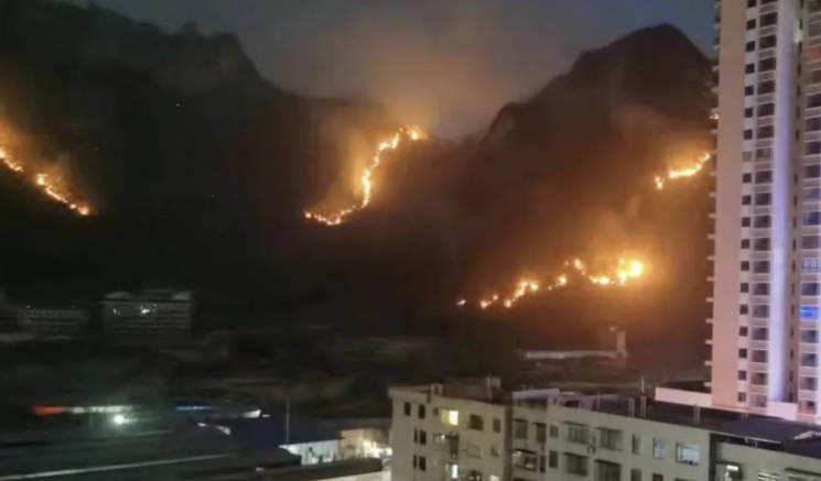 作為金城江城區(qū)最重要的一個山脈,老虎山總占地面積是比較大的,30左右是靠近東城這一片區(qū)域的山頭起火了,風(fēng)力比較大,加上天氣又較為干燥,整個火勢有著極快的速度蔓延,并且有多個起火點。