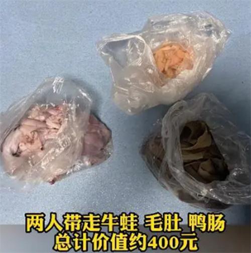 最近,在浙江金華永康市發(fā)生了一起自助餐餐廳食材被盜事件,據(jù)記者了解,此次事件是兩名女子在自助餐就餐期間,將餐廳中的牛蛙,鴨腸和毛肚之類的食材打包帶回家,事件被發(fā)現(xiàn)之后店主立即報警,經(jīng)過調(diào)查迅速鎖定了此案的兩名嫌疑人,并對兩人進行了行政拘留的處罰。