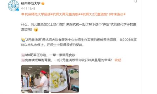 近日,一名網友在網上發帖曝光學校的兩元蓋澆飯歷史展板,此次曝光之后受到了很多網友的關注,據了解,事件中的兩元蓋澆飯是杭州師范大學專門為學生推出的一種食堂套餐,從2005年至今為止18年來直都未曾漲價,并且提供免費續飯的服務,即便在十余年來,杭州師范大學歷經了搬遷,無論學校搬到了哪里,兩元蓋澆飯的特色窗口都依舊存在,滿足了很多困難學生的就餐需求。