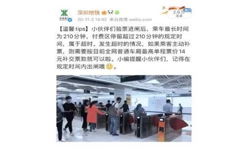 據(jù)了解深圳地鐵官方曾經(jīng)在多個公眾社交平臺上提醒乘客,在驗票進場之后,乘客最長的乘車時間是210分鐘,如果在地鐵內(nèi)待的時間超過了210分鐘就屬于超時,需要按照規(guī)定補交票款。相關(guān)“超時罰款”的話題上熱搜之后,深圳地鐵官方在4月13日再次發(fā)文表示,如果發(fā)生超時的情況,乘客就需要按照目前深圳市地鐵全網(wǎng)最高單程票價15元來補交票款。