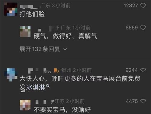 隨著這起事件的逐漸發酵,很多的網友都開始自發購買冰淇淋前往車展現場發放,這些視頻在網絡上也得到了傳播,眾多網友都在視頻上評論稱,這種行為簡直太打寶馬公司的臉,不過網上還有一名網友被人們當做是寶馬公司在現場發送冰淇淋的工作人員之一,被很多網友涌進評論區怒罵,但是事后證明該網友并不是當時的工作人員,對于這個事情,眾多網友也要理性看待,不要做出一些過分的事情。