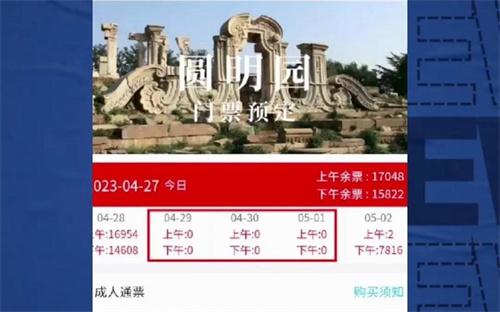 4月27號網傳圓明園五一門票163年首次售罄,有人查看了圓明園門票預訂上面的數據,可以看到在4月29號到5月1號,所有的票全部被搶空,沒有任何余票,圓明園的工作人員稱163年以來圓明園的票第1次出現被賣完,不過現場有兌換紙質票的服務,現在網上是沒有門票可售了,工作人員還稱門票還是能夠買到的,大家可以關注一下圓明園官方微博。