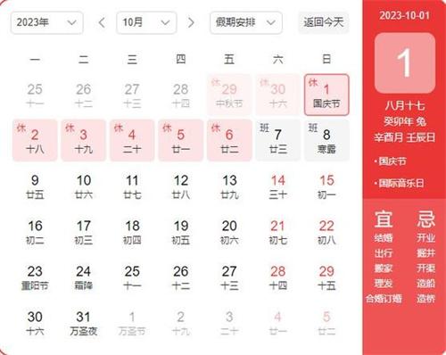 據(jù)日歷顯示,2023年9月29日為中秋節(jié),10月1日為國(guó)慶節(jié),中秋遇上國(guó)慶,相關(guān)政策表示,中秋節(jié)前不調(diào)休,節(jié)后連放八天假,八天假過后打工人需連上七天。