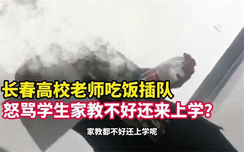 吉林長春5月11日發生一件高校老師插隊結果被學生拒絕之后,非常的暴跳辱罵學生,此視頻從網上傳播之后引發社會熱議,通過視頻可以看到同學們正在有序的排隊,一位老師大聲的質疑同學丟臉沒有家教,另一位同學回答教學就是先來后到不插隊不是嗎,老師則表示要尊老愛幼尊師重道,讓對方多讀幾本書要不會遭到社會的毒打,被辱罵的同學表示是老師帶著一群的學生插隊,表示這群學生要去考試非常的急,如果老師會事先將事情說清楚自己會讓出來。這件事情由長春工業大學南湖校區黨委書記已經明確表示開啟調查處理。