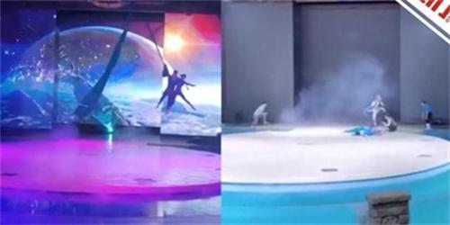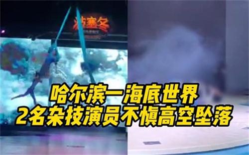 哈爾濱塞東海底世界的大馬戲表演突然發(fā)生演員高空墜落的事件。從現(xiàn)場(chǎng)的視頻中可以看出,兩名演員在表演時(shí)緊緊依靠著一根綢帶,在高空中進(jìn)行雜技表演,上方的金屬部件突然發(fā)生斷裂,導(dǎo)致兩名演員紛紛衰落在舞臺(tái)上。