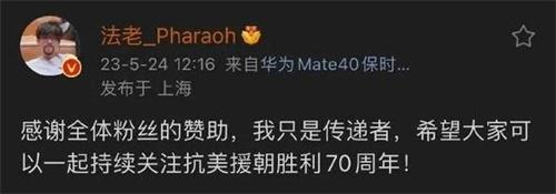 很多人在說起法老這名說唱歌手時,第一印象就是一名無厘頭的說唱歌手或者是二元素極其飽滿的歌手。但這只是大家對于法老的第一印象而已,如果深入的去了解法老,你會發(fā)現(xiàn)在整個說唱圈里面法老師最讓人值得尊敬的歌手之一,然而就在今天的志愿者老兵的官方微博上,突然出現(xiàn)了一條關(guān)于法老捐款的文章,在文章里面提到了,法老在參與志愿軍老兵幫扶計劃時,總共捐款近1296537.06元,法老捐款的全部細(xì)節(jié)在文章中給闡述了出來。