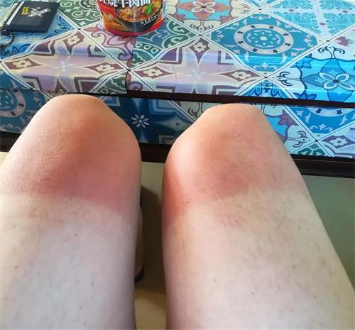 根據(jù)王女士個人的表示自己平時非常的愛狗狗,在5月29日那天自己獨自帶著狗狗前往云南自駕游,當時身穿一條破洞褲,膝蓋處會有皮膚外露,自己的狗狗在草叢里上廁所時不慎跑丟,非常的著急。于是在當?shù)刈饬艘惠v電動車趕緊尋找,當時云南的天氣高溫已經有30多度,因此紫外線指數(shù)非常的高,王女士是從早上9點多開始一直到下午4點多,總共尋找了有7個多小時,期間并沒有做防護措施,沒有涂防曬霜,也沒有遮擋陽光,結果膝蓋處被曬傷,起了一大片水泡,自己擦藥之后還是明顯感覺到不是很舒服,在6月1日前往醫(yī)院做檢查,被醫(yī)生診斷為二級燙傷。
