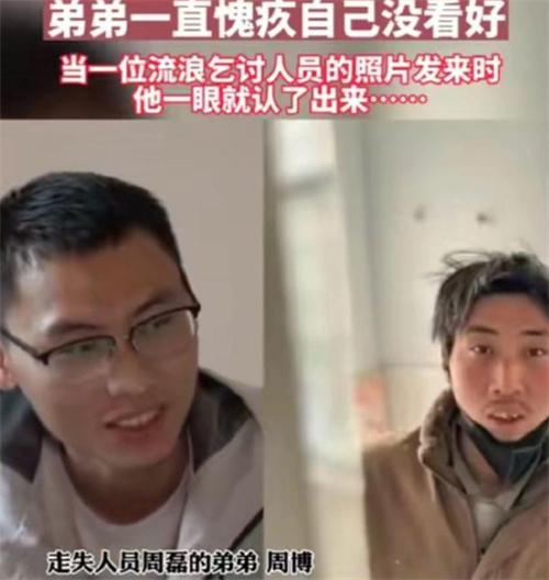 就在周磊的家人接到公安部門的聯系稱,有一批是失蹤人員的照片出現時,弟弟周末便快速來到公安機關,針對照片去進行仔細甄別,弟弟周博在對這些照片進行甄別時,一眼就看出了照片中有一個流浪乞丐就是自己的哥哥周磊。弟弟周勃的發現讓周磊的家人再次充滿了希望,雙方在經過DNA驗證之后,最終確認了這位流浪乞討者正是走失12年的周磊,這個奇跡一樣的結果也讓周磊的家人對于血濃于水的這種連接之情變得萬分的信任。