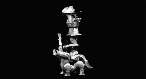 三星堆遺址中有著一種極為特殊的青銅器,這種青銅器被叫做“頂尊”。頂尊是由兩部分組成的一件青銅器,上一部分是大口尊,下一部分是人像或者動物象。頂尊極有可能是古蜀人用來祭祀祖先或者天神的器物,也很有可能是古蜀貴族或王族權力的象征。頂尊的造型十分罕見,也極為獨特。
