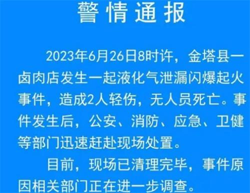 甘肅省酒泉市金塔縣的公安局也針對本次爆炸作出最新警情通知。6月26號早上8點左右金塔縣的一家鹵肉店發(fā)生了液化氣泄漏爆炸事件,無人員死亡造成兩人輕傷。爆炸發(fā)生之后,衛(wèi)健、應急、消防、公安多個部門聯合迅速趕赴現場處置。近段時間已經發(fā)生了兩起液化氣爆炸事件,再次也呼吁各地餐飲店一定要安全用氣。及時清查液化氣或者燃氣相關設施是否有安全隱患,及時排查隱患,以免造成不必要的損失。