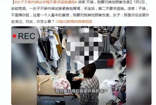 近日,購買衣服時相信很多人都會先去試衣服,是否合適而是衣服,在我們購買衣服時也是非常重要的一個過程。但是在試衣服的時候,我們需要保持最起碼的基本素質,墜機粉的素質和禮儀,不僅是一種尊重他人的表現,同時對店家也是一種尊重。在北京時間的7月2日,位于安徽省蕪湖市的一家服裝店里,就發生了一起女子在買衣服的時候沒有穿內褲,就直接將衣服給試了。第2天來到店里要求老板退換,商家直接拒絕這名女士退換的事情。