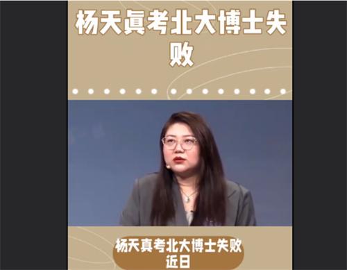 近日,楊天真在社交媒體上發布了一段視頻,在該視頻中分享了考取北大博士失敗的一段經歷。然而讓人沒想到的事情是,楊天真的這段分享視頻在全網引起了輿論風暴,很多網友都在網上發帖吐槽,質疑楊天真在娛樂圈中已經取得成功,是否意味著該放棄學術追求了,眾多網友的質疑瞬間讓楊天真卷入了一場質疑焦點中。