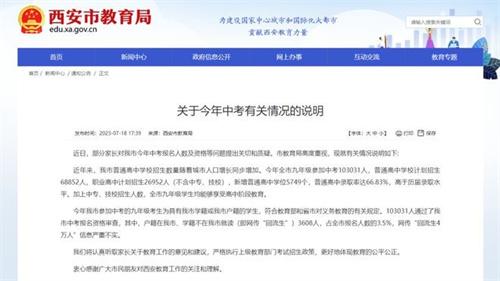 近日,有一部分家長在自己的社交媒體上發(fā)文,表示對西安市今年中考報名的人數以及入學的資格等各種問題提出了自己的質疑,西安教育局對于家長們所提出的問題也給予了高度重視。在企業(yè)18日,西安教育局也立刻在官方微信上,對于家長們所提出的質疑給予了回應,西安市教育局在7月18日這一天發(fā)布了一條關于中考相關情況的具體說明。