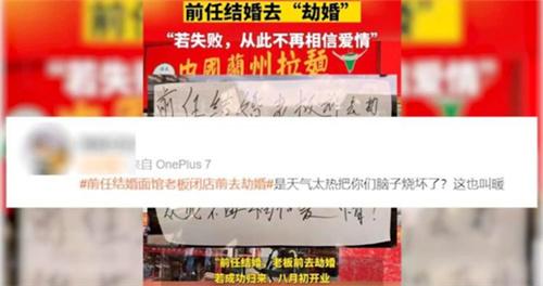 在現(xiàn)實生活里面,每一對情侶在分手之后都會選擇互不打擾,哪怕聽聞前任結(jié)婚的消息傳來之后,雖然會有些黯然,但依舊會大方的表示祝福,很少有人會選擇劫婚。畢竟劫婚這種事情只有在電視劇里面才看得到,然而近日有一位來自于杭州的網(wǎng)友,稱自己在百井坊巷的一家拉面店內(nèi)卻遇到了拉面店老板劫婚的事情。