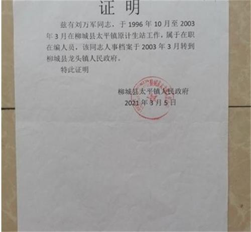12年前劉萬軍是柳州市柳城縣龍頭鎮環衛站有編制的工作人員。劉萬軍如今工齡已經滿30年,于是找到柳城縣的人,社局工資股的股長,想要辦理退休。但是卻得到了,連檔案都沒有,無法辦理退休的答復。劉萬軍將此事向鎮上和縣上進行了反映,希望能夠尋求到解決的辦法。縣人社局的副局長帶著劉萬軍一起查找了人事檔案去向的登記簿,發現上面記載著自己的檔案已經在2004年被太平鎮組委提走。柳城縣太平鎮黨委書記于7月27日表示縣里的相關部門已經成立了工作組,對此事正在展開調查。