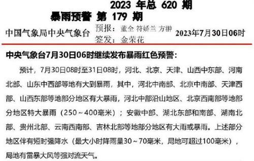 北京時(shí)間7月30日,中央氣象局再次發(fā)布了紅色暴雨預(yù)警信息。預(yù)計(jì)從7月30號(hào)的8點(diǎn)~7月31號(hào)的8點(diǎn)。我國(guó)北方多個(gè)地區(qū)將會(huì)出現(xiàn)特大暴雨,其中河北、北京、天津、山西等地區(qū)有局部特大暴雨,而安徽、湖北、湖南、貴州、云南、吉林等地區(qū)有大雨或暴雨,還有個(gè)別地區(qū)會(huì)出現(xiàn)強(qiáng)對(duì)流的天氣。對(duì)于市民們的出行將會(huì)造成非常嚴(yán)重的影響,所以氣象局在此也提醒處在這些地區(qū)的市民朋友們果沒(méi)有必要的事情,盡量不要外出,而且暴雨極有可能會(huì)帶來(lái)一些地質(zhì)災(zāi)害的發(fā)生,盡可能的保證自己的生命安全。
