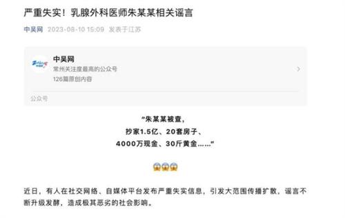 最后記者也發(fā)現(xiàn),在常州當(dāng)?shù)氐拿襟w曾經(jīng)對(duì)朱某蘭進(jìn)行過(guò)具體的報(bào)道,在這份消息上顯示朱某蘭是武進(jìn)醫(yī)院,人民醫(yī)院乳腺外科學(xué)科的主要工作人員,同時(shí)也曾經(jīng)在第二人民醫(yī)院乳腺外科擔(dān)任過(guò)主任一職,記者也和武進(jìn)區(qū)的人民醫(yī)院取得了聯(lián)系。該醫(yī)院的工作人員針對(duì)朱某蘭這一消息給出回應(yīng),稱(chēng)朱某蘭并不是本醫(yī)院的醫(yī)生,隨后記者又和常州市第二人民醫(yī)院取得了聯(lián)系,該醫(yī)院的工作人員在聽(tīng)聞?dòng)浾叩奶釂?wèn)后。表示對(duì)于朱某蘭被抓的這一消息,自己并不知情,朱某蘭被抓的具體情況需要向常州市衛(wèi)健委進(jìn)行咨詢(xún)。