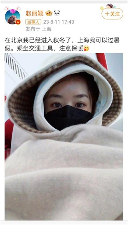 就在網友們討論趙麗穎的這種穿衣風格,很有可能會讓人感覺到不舒服時,趙麗穎本人在自己的社交平臺上給予了回應,趙麗穎表示,在北京時現在都已經進入了秋冬的季節(jié)了,在上海自己正在過暑假,趙麗穎更是直言大家在乘坐交通工具時一定要注意保暖。