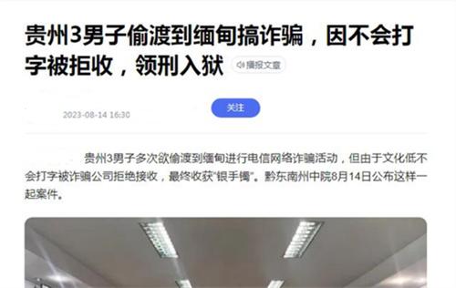 近日,傳來消息稱三名男子在緬甸想要偷渡時被警方成功攔截,雙方表示這名男子偷渡緬甸,想要從事詐騙活動。但是因為自己不會打字而被詐騙公司所拒絕,經法院審理后,這三名男人最終以偷越國境罪被捕入獄。