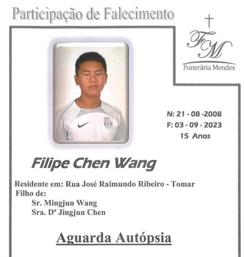 Felipe Chen Wang原本應該擁有非常美好的人,西醫生還應該有更多的精力。但是這個世界總是發生一些讓人意想不到的,難以琢磨的是,這些奇奇怪怪的事實讓人無法接受,但是這樣的不幸卻發生了。因為Felipe Chen Wang的不幸離世,其家人和朋友都表示悲痛欲絕,球隊的隊員們也表示非常震驚,教練們的難過也無以言表。直到現在,仍然沒有人能夠將這個巨大的噩耗消化。Tomar學校的董事,以及學校的所有相關人向Felipe Chen Wang的家人和朋友們,以及他所認識的所有人表示最為誠摯的慰問,十分惋惜的對這名可愛的中國男孩說再見。