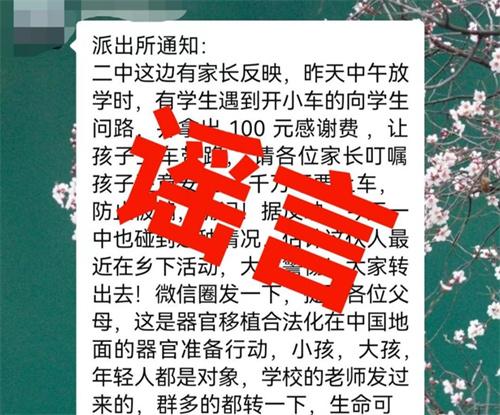 通過民警查實這一消息為不實的謠言,早在2016年這一謠言在全國多地都不斷的傳播多。地的公安機關也針對這一消息作出辟謠。打著安全教育的旗號,卻煽動家長不斷轉發到其他群里,在社會和廣大學生的家長中也造成了眾多不良的影響。