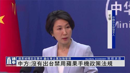 毛寧9月13日例行主持記者會,來自日本朝日電視臺記者提問,關于媒體報道部分中國政府機關禁止使用蘋果手機的消息是否屬實?外交部是否禁止使用蘋果手機?對此毛寧表示中國一直堅持推進高水平對外的發展,保護外商投資權益,營造法治化、國際化、市場化的營商環境,對于外資的企業要始終保持開放態度,非常歡迎外資在中國把握發展機會,共同的努力發展中國經濟,并沒有出臺禁止使用蘋果手機政策。