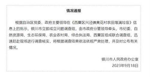 據了解在寧夏銀川西夏區興涇鎮黃花村有300多畝良田被垃圾覆蓋,無法耕種已經變成了垃圾場,這也導致村民的生活環境和生計遭到了嚴重影響。令人感到十分氣憤的,是向良田中倒垃圾的指示,來自于當地的城管局,并且多年以來沒有有效的抑制和整治,面對這樣的丑聞,寧夏銀川政府僅僅是通報調查組成立,沒有給予明確并及時的處理,結果這樣的情況也讓人懷疑政府是否真正的去重視這個問題。真正有能力有決心去解決這個問題,是否會保護農民的權益以及環境健康。