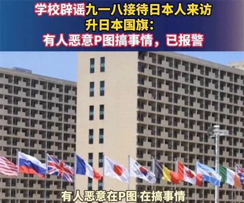 九一八事變是每一個中國人民都無法忘記的國恥,在這天我們必須要銘記歷史,警惕侵略。但是就在這一個十分敏感的日子中,有一所學校被曝出升日本國旗,這個消息令人震驚,網絡中流傳湖南外國語職業學院在918當天接待了日本人并且升了日本國旗。對此學校工作人員進行回應,表示這是造謠,肯定是有人惡意p圖,日本人來訪學校是5月16日,目前學校已經報警了。