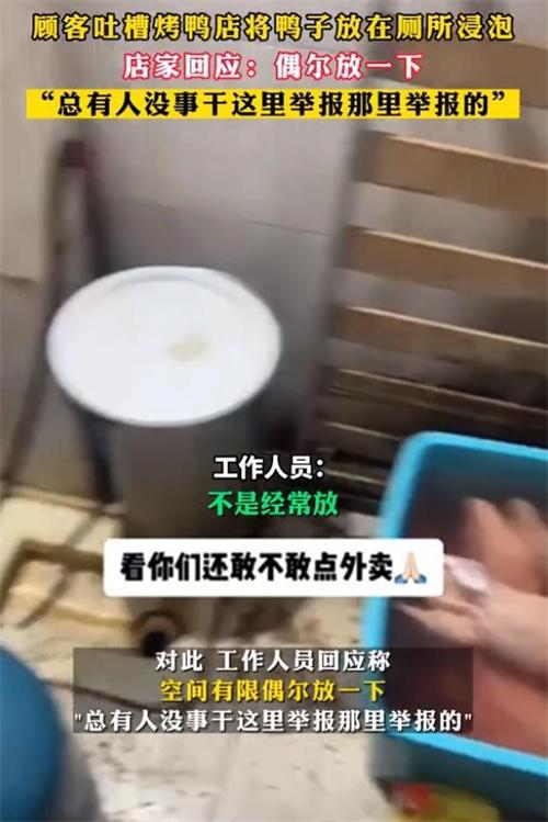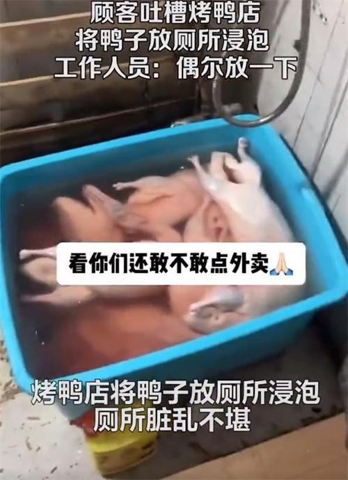 北京時間10月9日,湖北武漢的一家烤鴨店,因為將鴨子放在廁所里面浸泡,引發了網友們的討論和社會的關注。據了解,一名顧客在烤鴨店里面購買鴨子的時候,無意間發現烤鴨店的工作人員將鴨子放在廁所里面進行浸泡。他對這件事情感到非常的不滿意,于是直接向店家進行了投訴,但是店家的回應卻讓他感到非常的詫異,店家表示只是偶爾將鴨子在水桶里面泡一下,而且也不是經常泡。