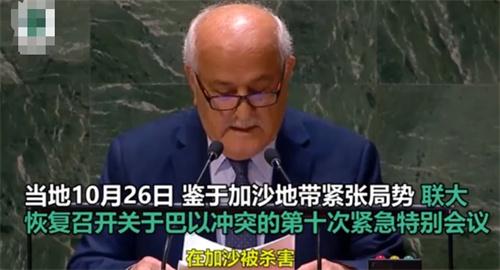 此前鑒于加沙地帶的緊張局勢,且聯合國安理會兩周以來多起有關巴以沖突的決議草案沒有能夠通過,所以應多國政府的要求,在當地時間10月26日,聯合國恢復了召開有關巴以沖突的第十次緊急特別會議,這一次會議在第七十八屆聯大主席丹尼斯弗朗西斯發(fā)言之后,巴勒斯坦常駐聯合國觀察員曼蘇爾是第一個講話的代表,他在此次發(fā)言中譴責以色列對巴勒斯坦民眾所犯下的罪行,并不點名批評了一些國家雙標對待巴勒斯坦的情況。