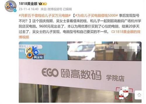 北京時間11月5日,在這個國慶假期里面,一位吳女士用著自己借來的錢和自己的兒子前往了杭州學院的一家數碼店購買電腦,他們購買的這一臺電腦總共花費了9600元,原本他們以為以非常優惠的價格購買到了一款十分不錯的電腦,然而在過去的20多天之后,吳女士兒子發現電腦的型號和他們之前購買的型號是完全不符合的,這是屬于嚴重的欺騙了消費者的消費權益。