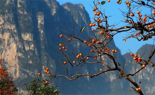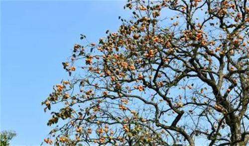 四川瀘州的古藺縣茅溪鎮柏臘村的山頭上還有一棵百年柿子樹,因為生長環境的獨特性和歷史的悠久,在當地十分聞名,每一年秋天,這棵柿子樹結的柿子和紅色的葉子也成為了游客們前往觀賞的一大景點。寒露之后,個百年柿子樹的葉子也在不斷落下,結出了一顆一顆的柿子,整個柿子在枝頭掛滿,和周圍秋天的景色互相輝映,就像一幅美麗秋季的畫卷。因為柿子在山崖之上生長,從遠處看去,仿佛懸掛的紅色瀑布一般,讓人感受到不一樣的美景。