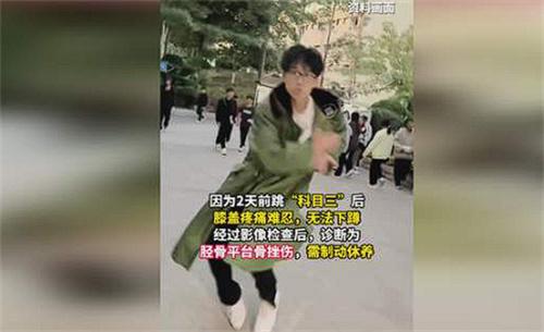 近日,浙江湖州一位00后小哥模仿網紅舞蹈“科目三”之后膝蓋疼痛難以下蹲,醫生檢查發現為脛骨平臺骨挫傷,這一消息引起人們的關注。