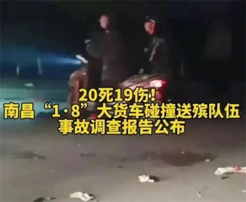 當時在2023年1月8日凌晨,南昌市南昌縣的某路段發生一起重大道路交通事故,當時造成了20人死亡,19人受傷。根據調查報告顯示江西省政府成立了由省應急管理廳等部門組成了江西南昌1.8重大交通事故調查組一起對本次事故進行詳細的搜查,而當時駕駛人陳某才是駕駛者,重型半掛牽引貨車在江西省樂平市萬年青上堡礦業有限公司,裝運砂石運往南昌市南昌縣。在南昌縣幽蘭鎮桃嶺村路段當中,程某才超速駛入同向路面,正在占道開展喪事活動的人群,當時造成了17人死亡,3人經過搶救無效死亡,19人受傷。