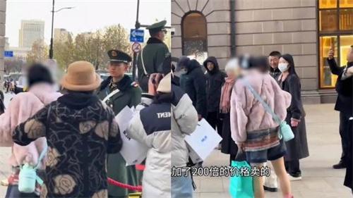根據(jù)網(wǎng)友發(fā)布的視頻,位于上海和平大廈路口,12月17日有一位女子當(dāng)街隊兩名執(zhí)勤哨兵進行挑釁,言語比較尖酸刻薄,女子身穿潮流服飾,手里拿著昂貴的蒂芙尼首飾袋,對哨兵神神叨叨的表示上海的東西太貴了,一塊錢的礦泉水都需要兩塊錢,上海的物價都是加200倍售賣的。對此哨兵有禮貌的回應(yīng),現(xiàn)在正在執(zhí)勤,請不要打擾,然而女子卻大聲質(zhì)問我讓你說話了,好好掙錢。