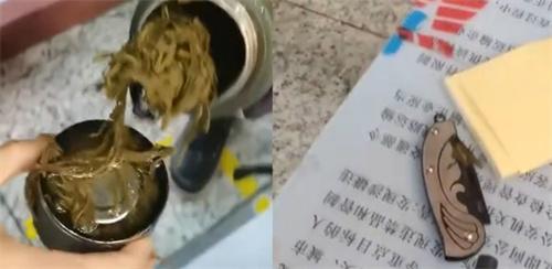 在1月7日,根據西南鐵路官方公告,近日在遵義站的安檢處有工作人員發現一個保溫杯的狀態比較異常,將杯中的液體全部倒出以后,安檢人員在杯中發現了一個刀具。這把刀就藏在杯中的茶葉里,根據核實,這個刀的長度已經超過了60毫米,屬于違規攜帶物品。工作人員特意提醒旅客如果需要攜帶長度超過60毫米的刀具,必須要辦理托運,否則將被視作為違規攜帶。