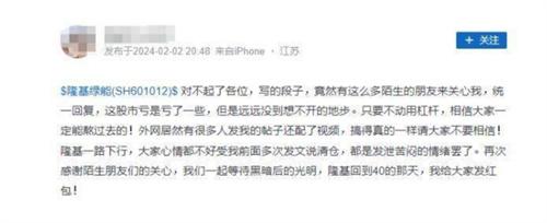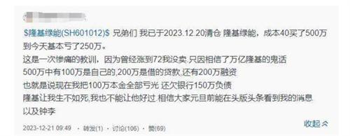 他曾經多次發文說清倉也只是宣泄一下自己目前的心情而已,該名網友于去年12月21日發布動態稱已經清倉了隆基綠能,該股市在40元/股買入,共計投入資金500萬。100萬是自有資金,200萬為借款,剩下200萬為融資,清倉后他還欠銀行150萬負債。他對未來的股市行情深表擔心。