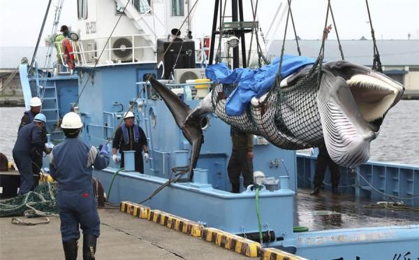 當地時間7月1日,日本正式重啟商業捕鯨,8艘捕鯨船先后從北海道釧路港及山口縣下關港出海,前往日本專屬經濟區域內進行捕獵。據共同社報道,當天已有兩條小須鯨被捕獲。法新社報道稱,為了使這頭8.3米的小須鯨保持新鮮,它在岸邊就被開膛破肚,放干鮮血,之后漁民將其轉移到卡車上送往港口工廠,工人隨即將之切割解體,預計將于4日進入市場進行交易。