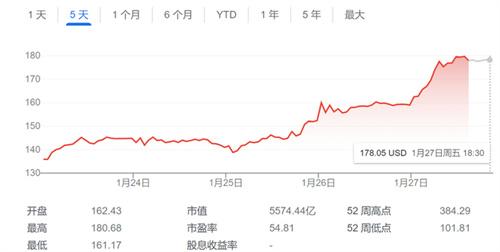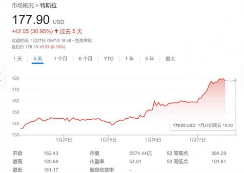2022年對于特斯拉來說可謂是災(zāi)難性的一年,2022年特斯拉的市值縮水了65%在特斯拉發(fā)布2022年年度報(bào)告之后,該公司的股票出現(xiàn)了大幅度的上漲在1月27日特斯拉的股價(jià)上漲幅度創(chuàng)下了近10年以來的最大漲幅,在本周特斯拉的股價(jià)上漲累計(jì)已經(jīng)達(dá)到了33%,目前特斯拉的股價(jià)已經(jīng)達(dá)到了177.9美元,上漲幅度達(dá)到了11%,這是自從2022年12月9日以來的最高股價(jià)和2023年1月3日的108.1美元上漲了65%。