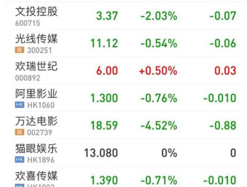 在1月30日,影視股在盤中出現集體下挫,多只影視股出現不同程度的下跌趨勢,其中歡喜傳媒跌幅近13%,光線傳媒跌幅超9%,金逸影視跌幅在7%以上,博納影業下跌幅度達到了6%,幸福藍海跌幅超過6%,華策影視跌幅同為6%左右,萬達電影和橫店影視也都出現了5%的下跌幅度。