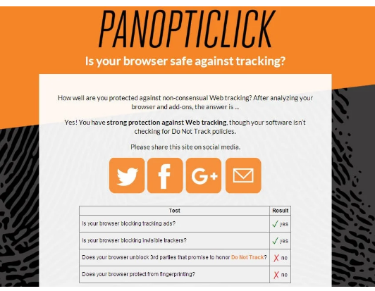 Panopticlick 2.0可能會根據掃描結果建議使用工具。根據EFF的說法,它可能會根據平臺和測試結果建議諸如Privacy Badger,Adblock或Disconnect之類的工具。