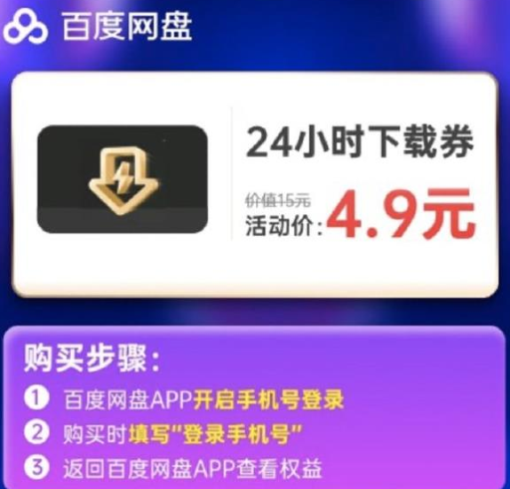 24小時(shí)下載券為偶爾需要下載文件的用戶打造,其時(shí)效性只有24小時(shí)。在你下載文件時(shí),系統(tǒng)會(huì)提醒是否開啟下載加速,在百度網(wǎng)盤App內(nèi)完成購買后即可享受VIP加速。